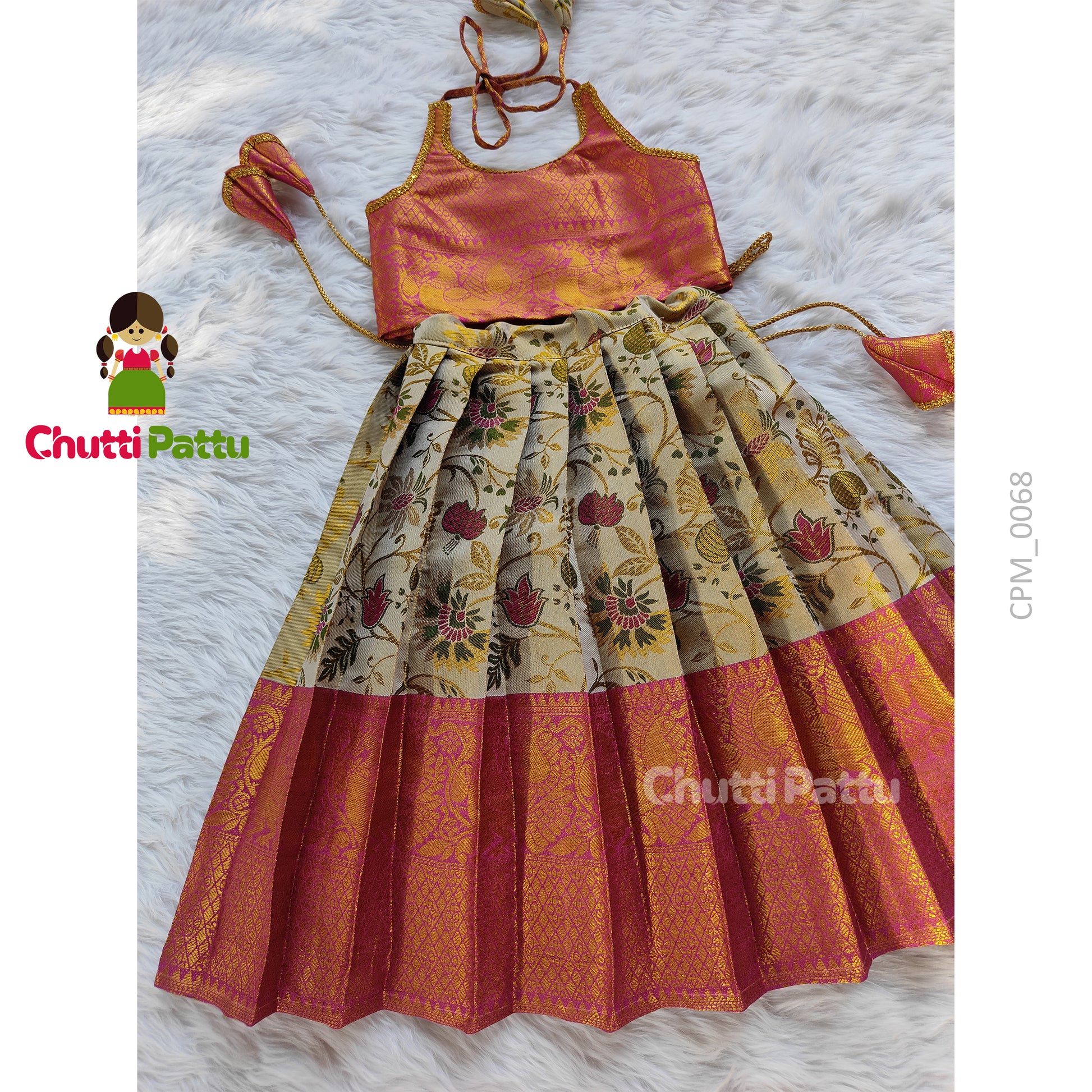 Step into elegance with this most-requested Kalamkari Kanjeevaram Tissue Silk set β a perfect mix of comfort and tradition, crafted with love for your little fashionista π