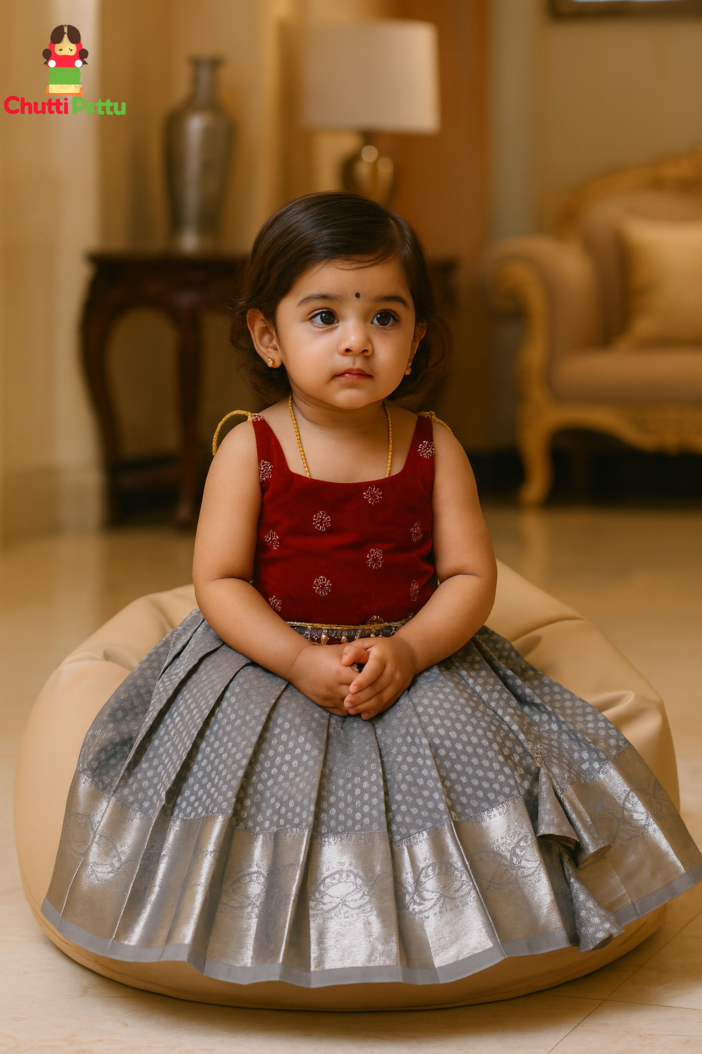 π Fabric: Red Velvet Top & Grey Kanchi Soft Silk Skirt β soft, rich & comfortable π«
