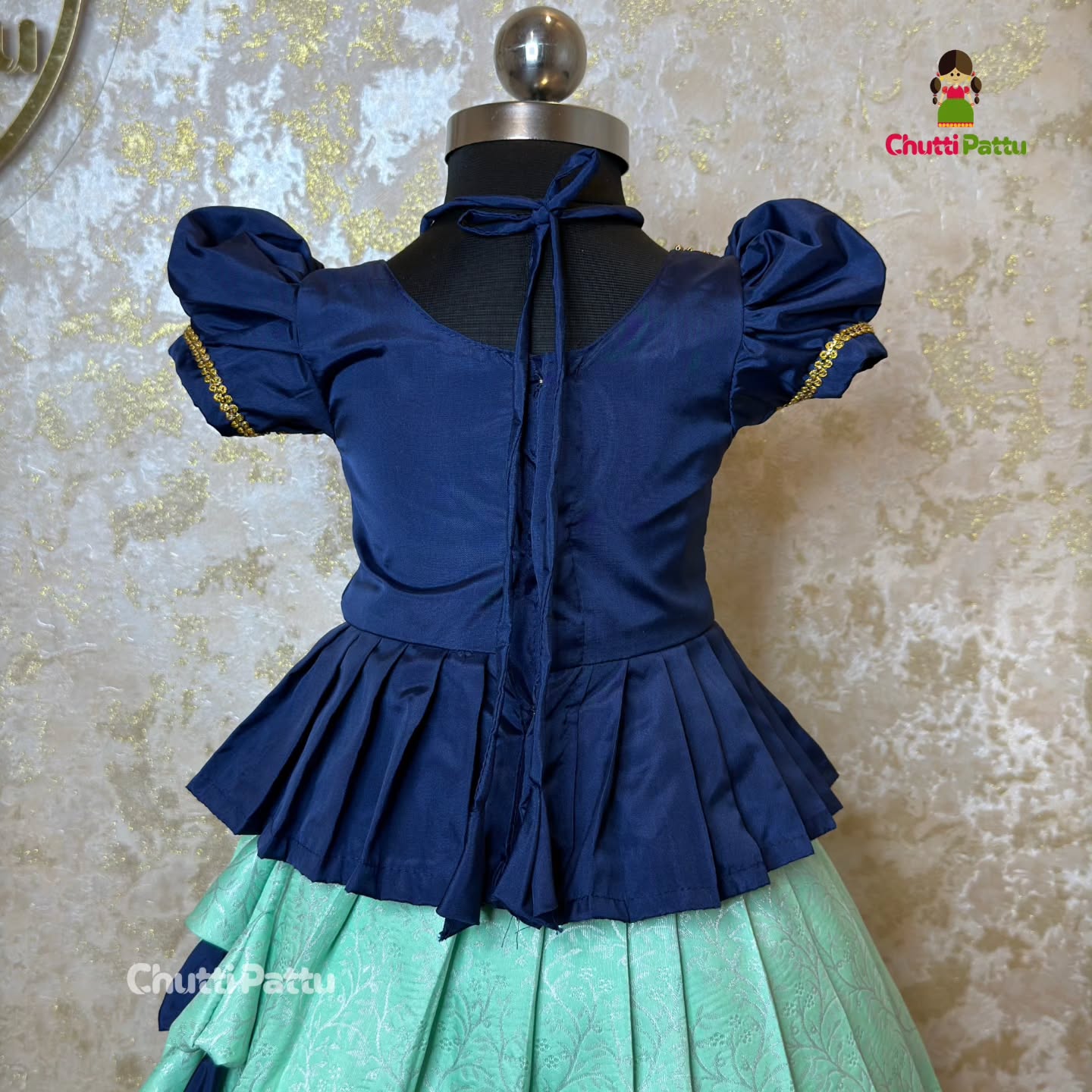 Mint Green & Navy Blue Premium Aari Pattu Pavadai | CPM_0354