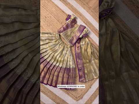 Off-white and Lavender Half saree resembling pattu pavadai 😍✨ Item Code: CPM_0474 🌟 Material: Embrace the charm of Premium Tissue silk fabric, ensuring comfort and elegance for your princess. 👑 Design: Pleated dupatta attached in Blouse, Pretty aari work on the sleeves border 😍 and elastic skirt ✨✨✨ 🌈 Perfect for Every