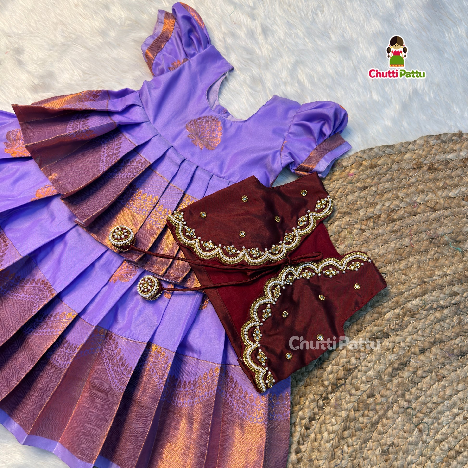 Lavender & Brown Two-in-One Kanchi Soft Silk Aari Overcoat Set | CPM_0504
