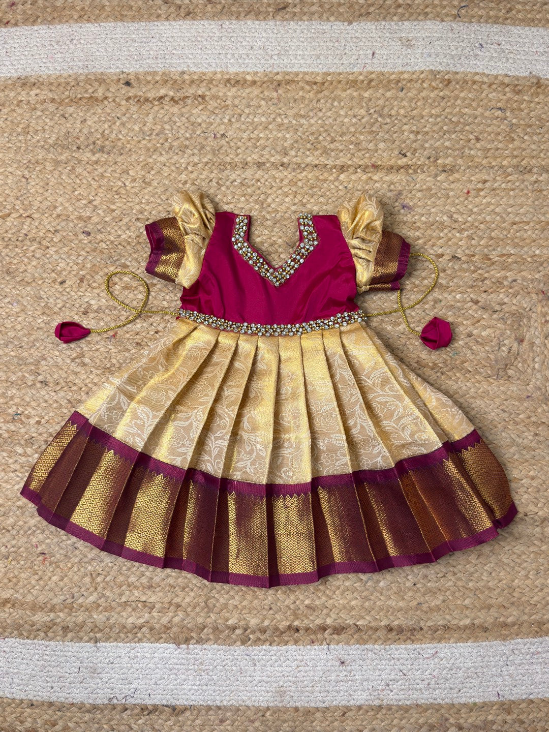 🌸 Top: Stunning magenta bodice with elegant finish for a rich festive look