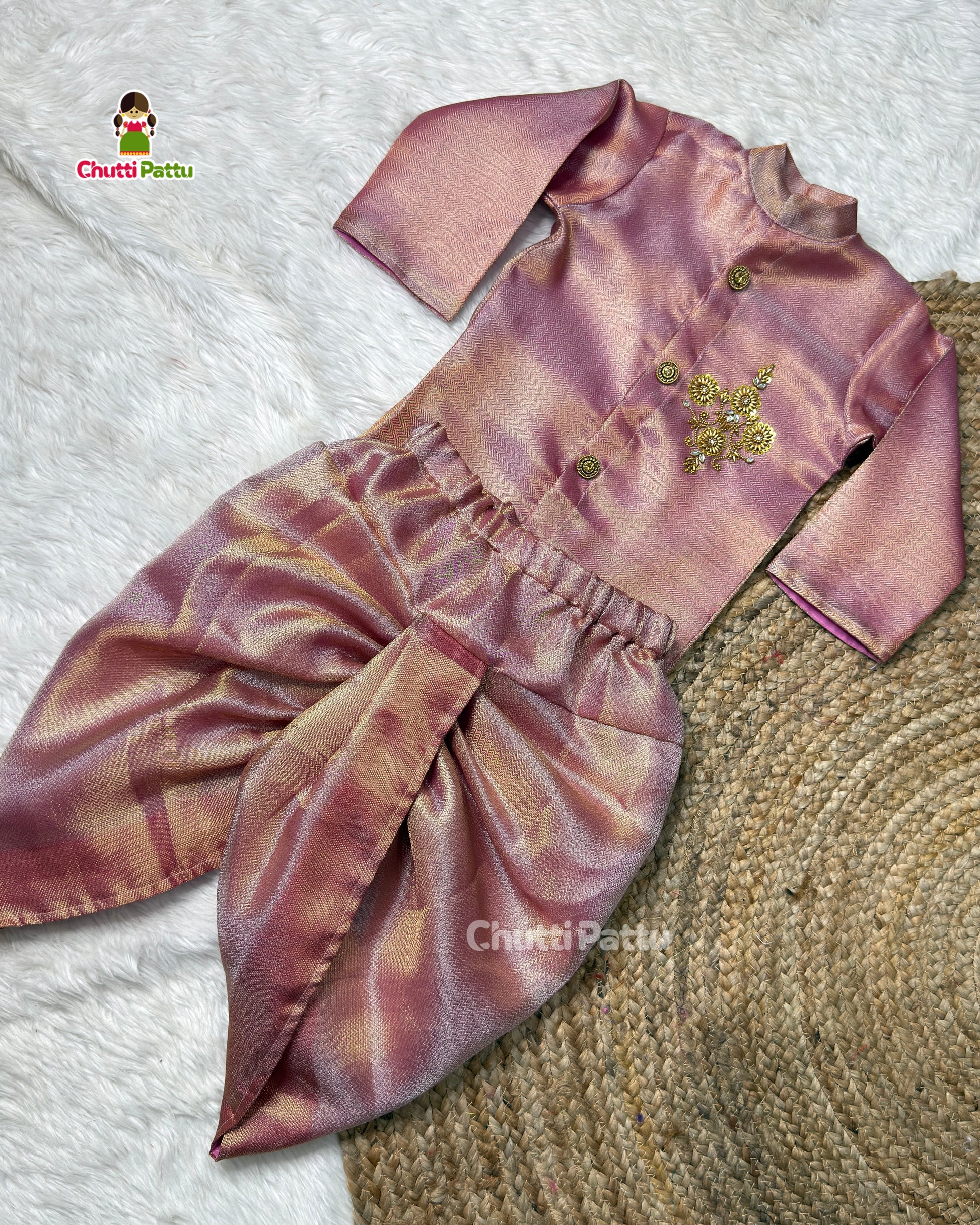 Jyothika Inspired Saree - Pink Tissue Silk Aari Kurta & Dhoti Set ComboΒ β¨Β